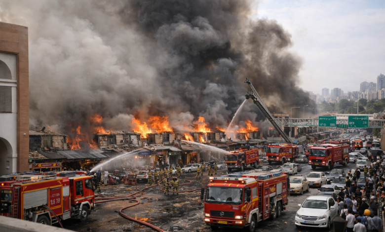 حريق سوق جنت آباد في طهران يثير جدلًا واسعًا وتساؤلات حول خلفياته